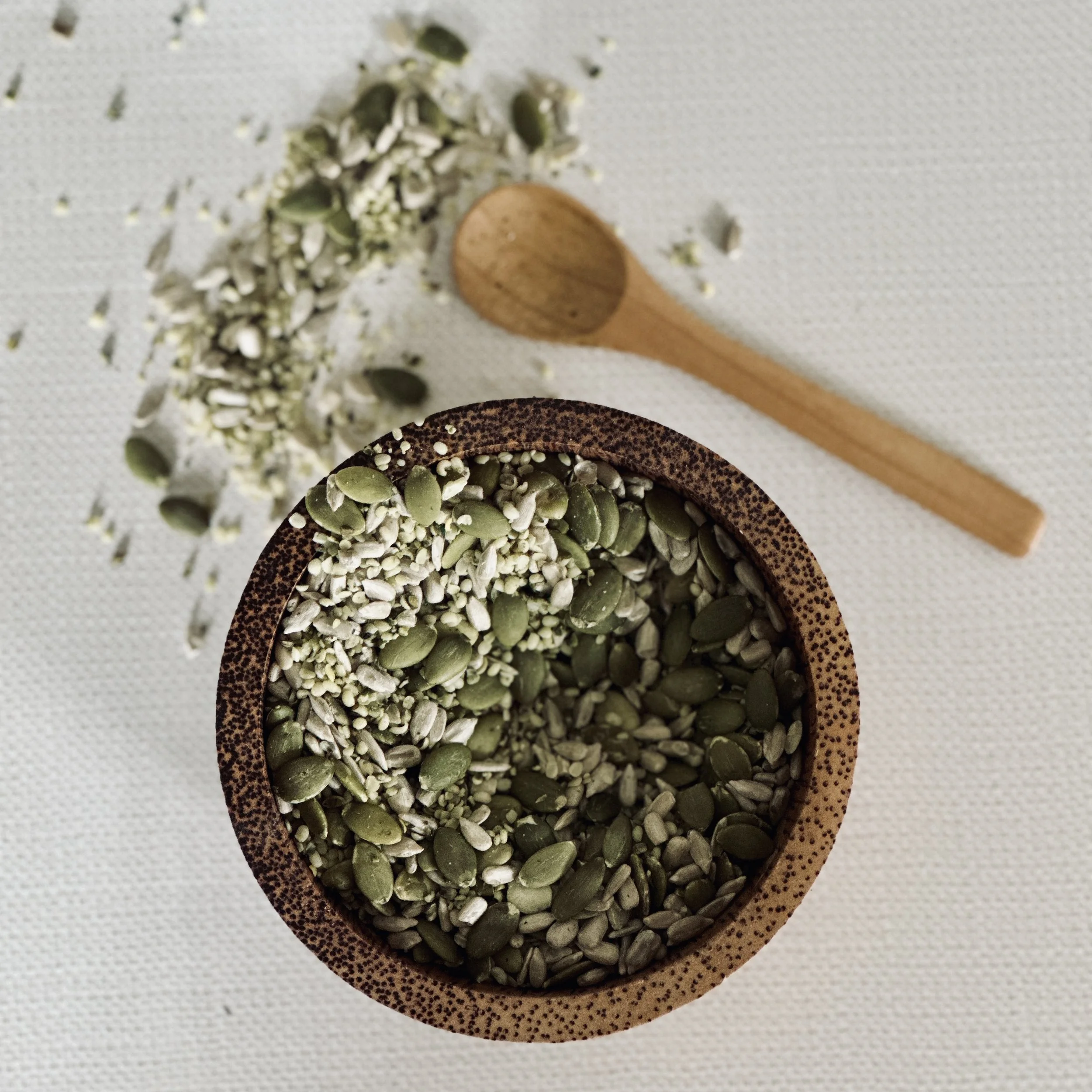 A powerhouse blend of nutrient-dense seeds packed with protein, fiber, and healthy fats to fuel your day. Perfect for sprinkling on yogurt, smoothies, oatmeal and more.